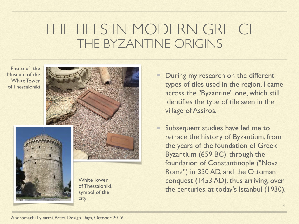 So, I just wanted to recreate this patina of time on the Byzantine tile, which accompanies our senses on an ideal journey through the centuries of this mysterious and fascinating region, in which the stories and destinies of the Southern Mediterranean intertweave … Italy, France, Greece, ancient Byzantium, modern Istanbul.