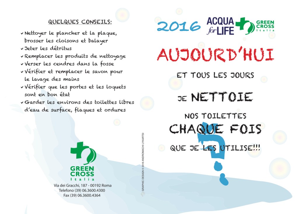 Creation of two educational flyers addressed to the schoolchildren of the elementary schools in the rural areas of Senegal where Green Cross in collaboration with Giorgio Armani implemented a project (Aqua For Life) for water re-abilitation to provide access to safe drinking water for children and their communities.