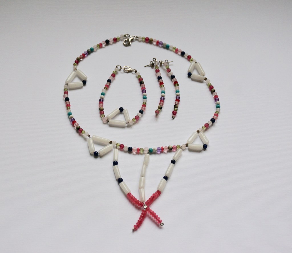 The materials are natural stones, silver accessories, stainless steel string. I usually create no more than 2-3 identical items, this time I’ve created only one piece for various reasons: First of all, the white jade stones are very rare and I didn’t find more than those used here and second, I wanted this item to remain unique because it’s inspired from the years I passed in Congo and from the unique people I’ve met in this Continent. It’s a tribute to some of them.